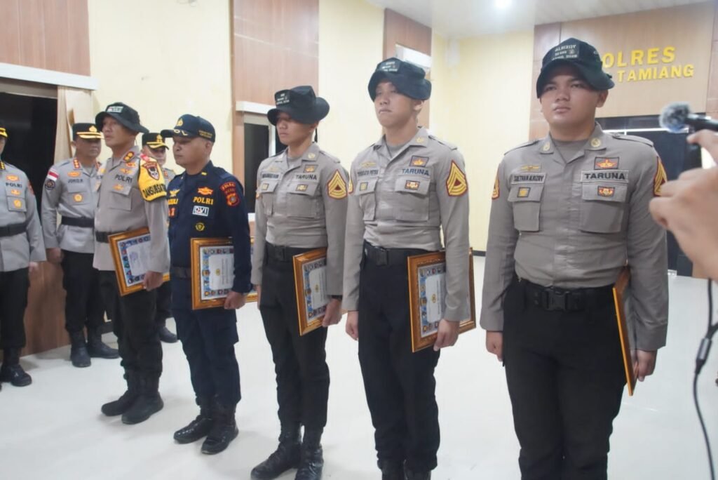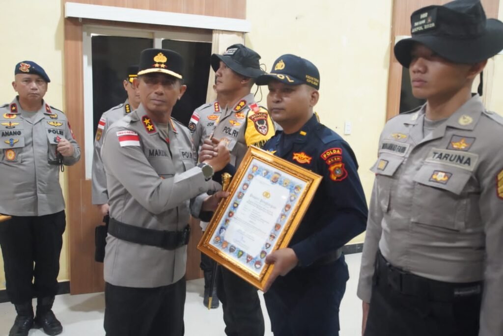 ACEH TAMIANG – Kapolda Aceh memberikan penghargaan kepada Komandan Batalyon (Danyon) Taruna Akademi Kepolisian, personel Polda Aceh, serta Taruna Akpol yang dinilai berjasa dalam pengembangan ketahanan pangan di wilayah terdampak bencana serta aksi kemanusiaan penyelamatan seorang pemuda yang hanyut di Sungai Aceh Tamiang.