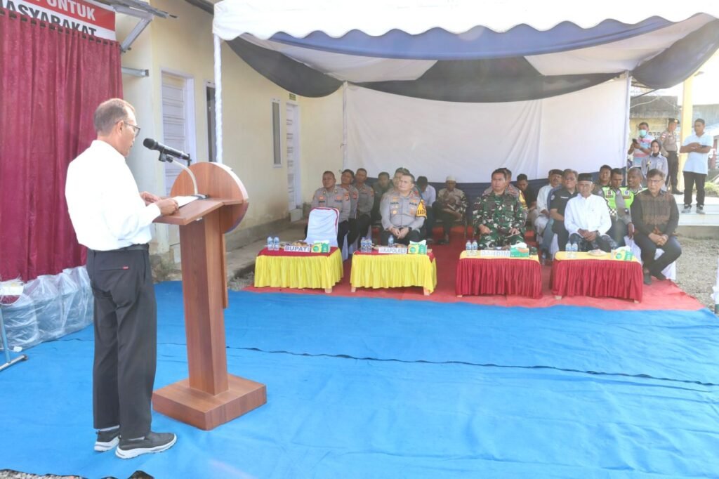 Kapolres Pidie Jaya AKBP Ahmad Faisal Pasaribu dalam sambutannya menyampaikan bahwa depot air minum RO ini bersumber dari bantuan Kantor Staf Kepresidenan yang diperuntukkan bagi masyarakat secara gratis.