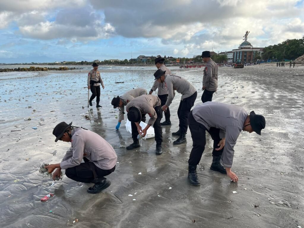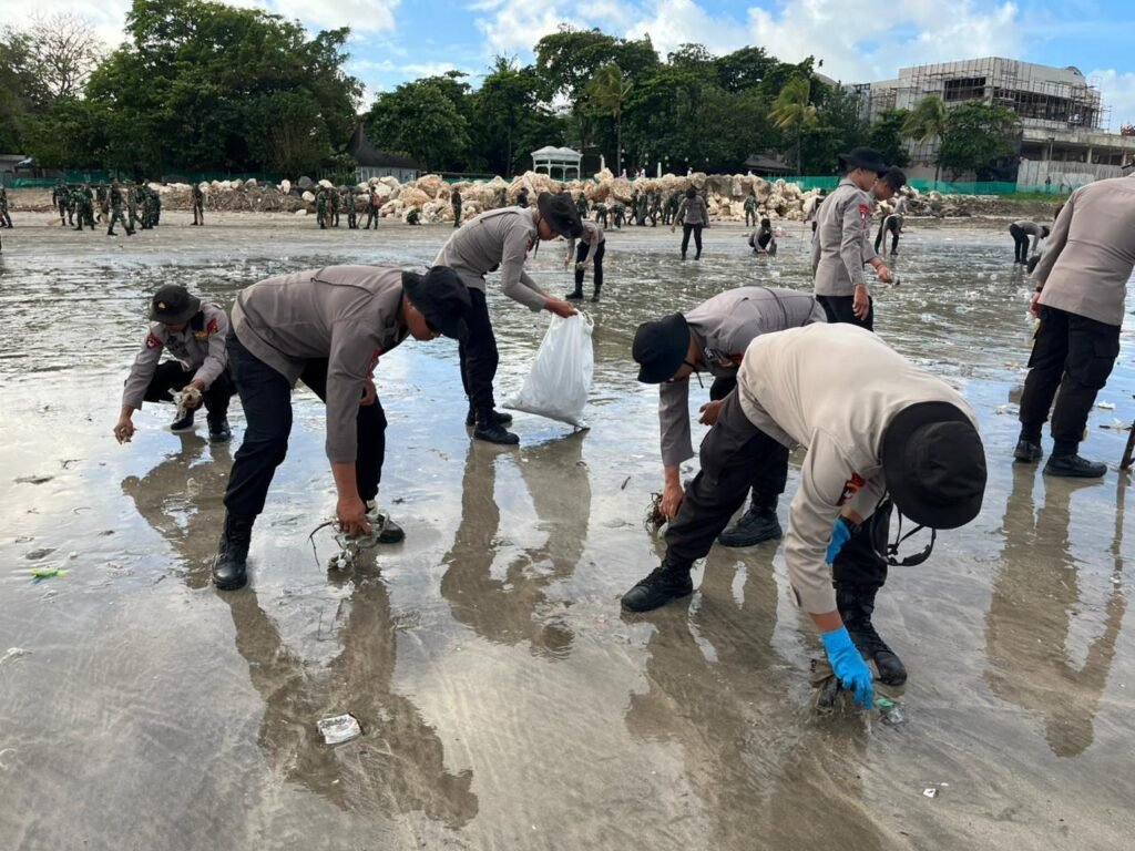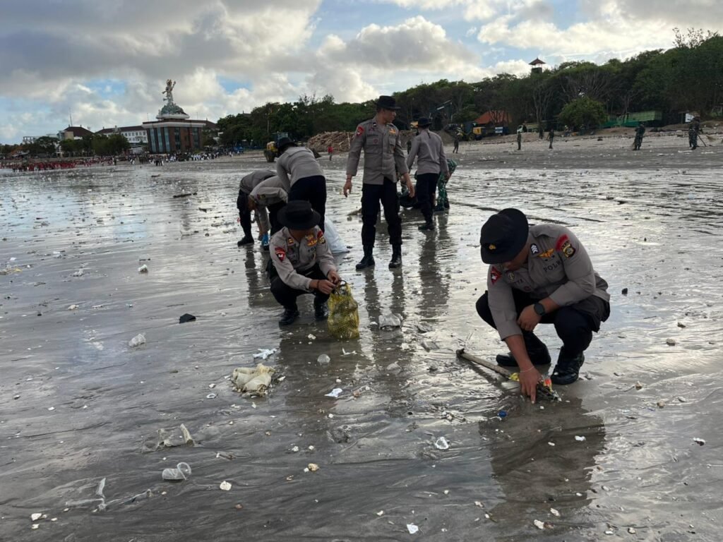 Badung, Bali — Kepolisian Daerah (Polda) Bali bersama TNI dan masyarakat menggelar kegiatan Karya Bakti Pembersihan Pantai dari sampah plastik di kawasan Pantai Kedonganan dan Pantai Kuta, Kecamatan Kuta, Kabupaten Badung, Bali, Selasa (3/2/2026) pagi.