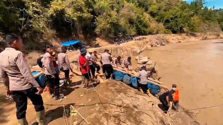Kabagpenum Ropenmas Divhumas Polri Kombes Pol Erdi A. Chaniago menyampaikan bahwa pembangunan jembatan darurat tersebut merupakan bentuk nyata kehadiran Polri dalam membantu masyarakat yang terdampak bencana.