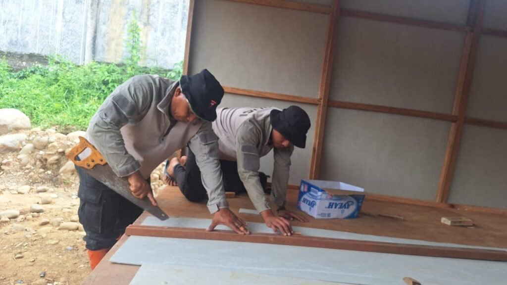 Sumatera Barat – Kepolisian Negara Republik Indonesia (Polri) kembali menunjukkan kepeduliannya terhadap masyarakat terdampak bencana melalui kegiatan pembangunan Hunian Sementara (Huntara) di Kelurahan Kapalo Koto, Kecamatan Pauh, Kota Padang, Senin (19/1/2026).
